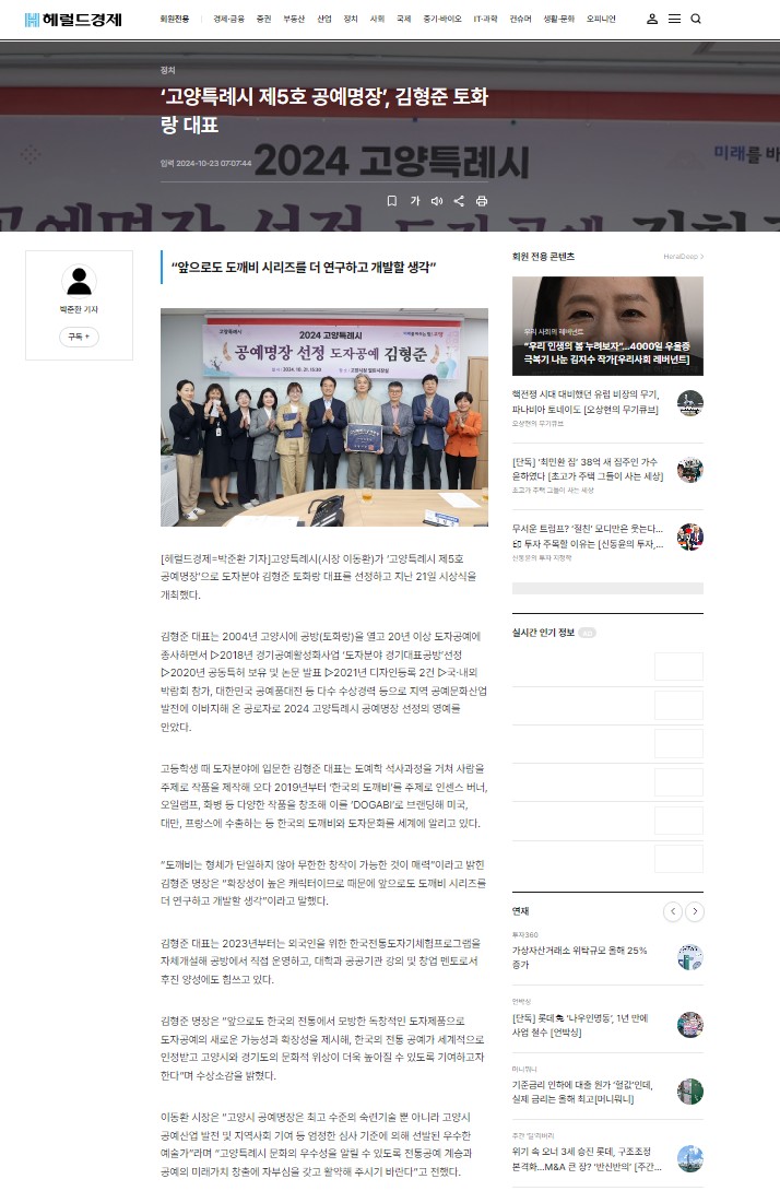 I was selected as the 5th Craft Master of Goyang City,