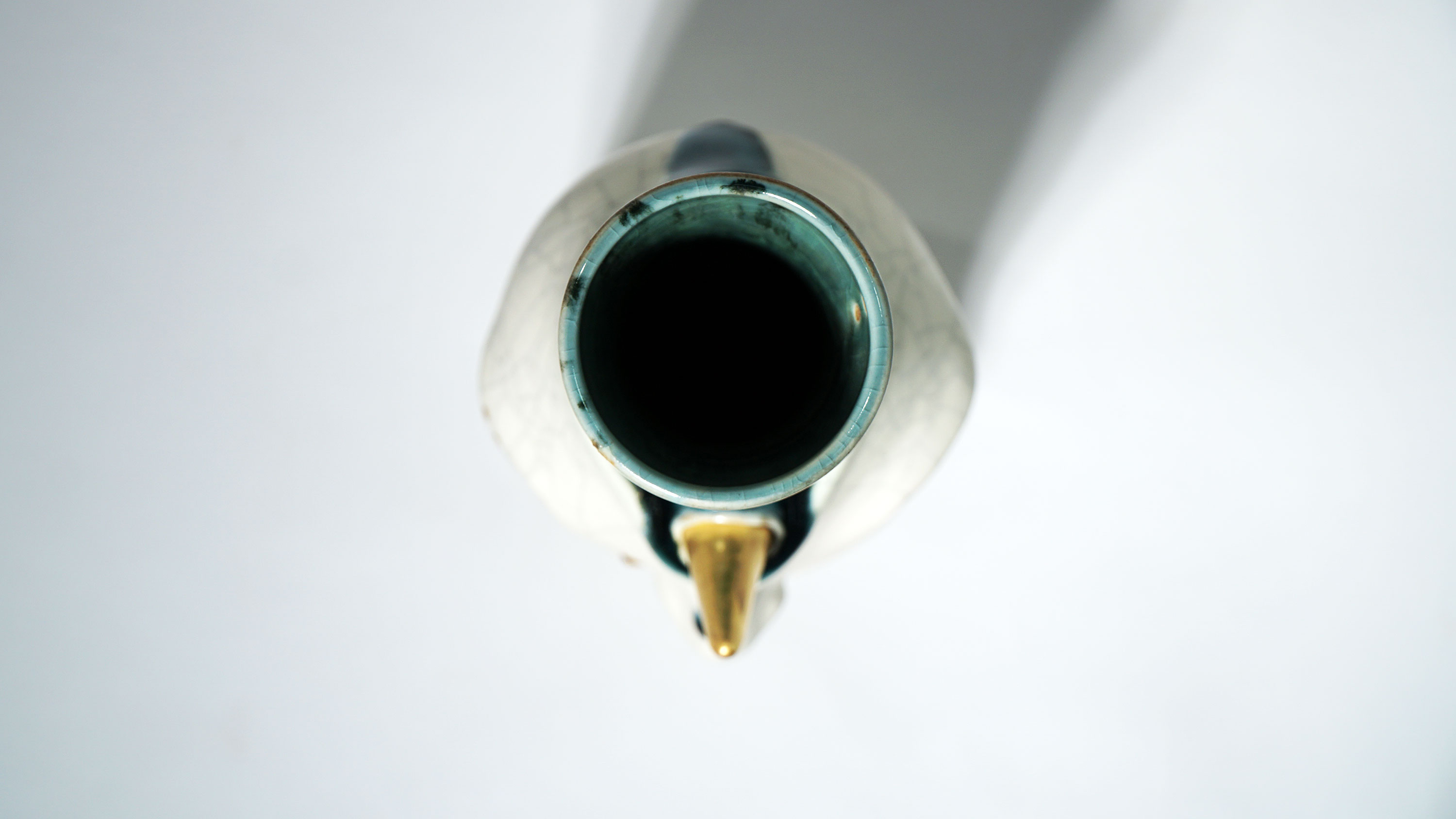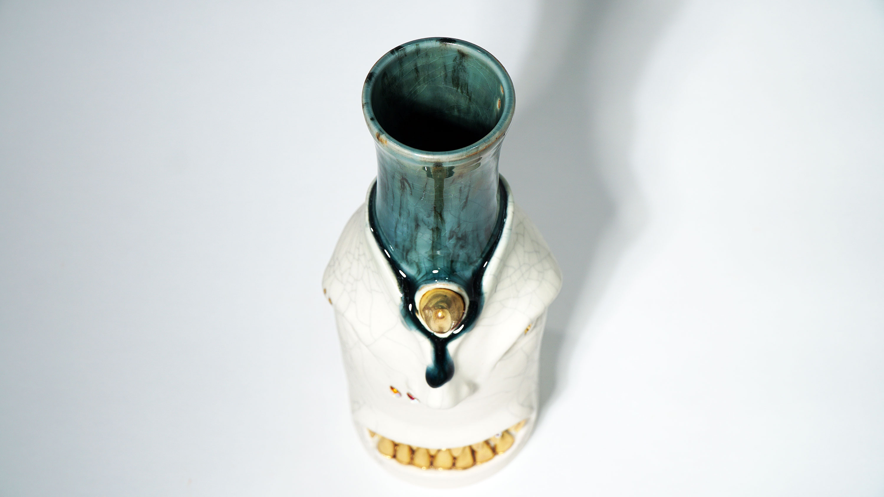Dogabi Flower Vase is crafted with white porcelain clay and gold metallic glaze as an accent.